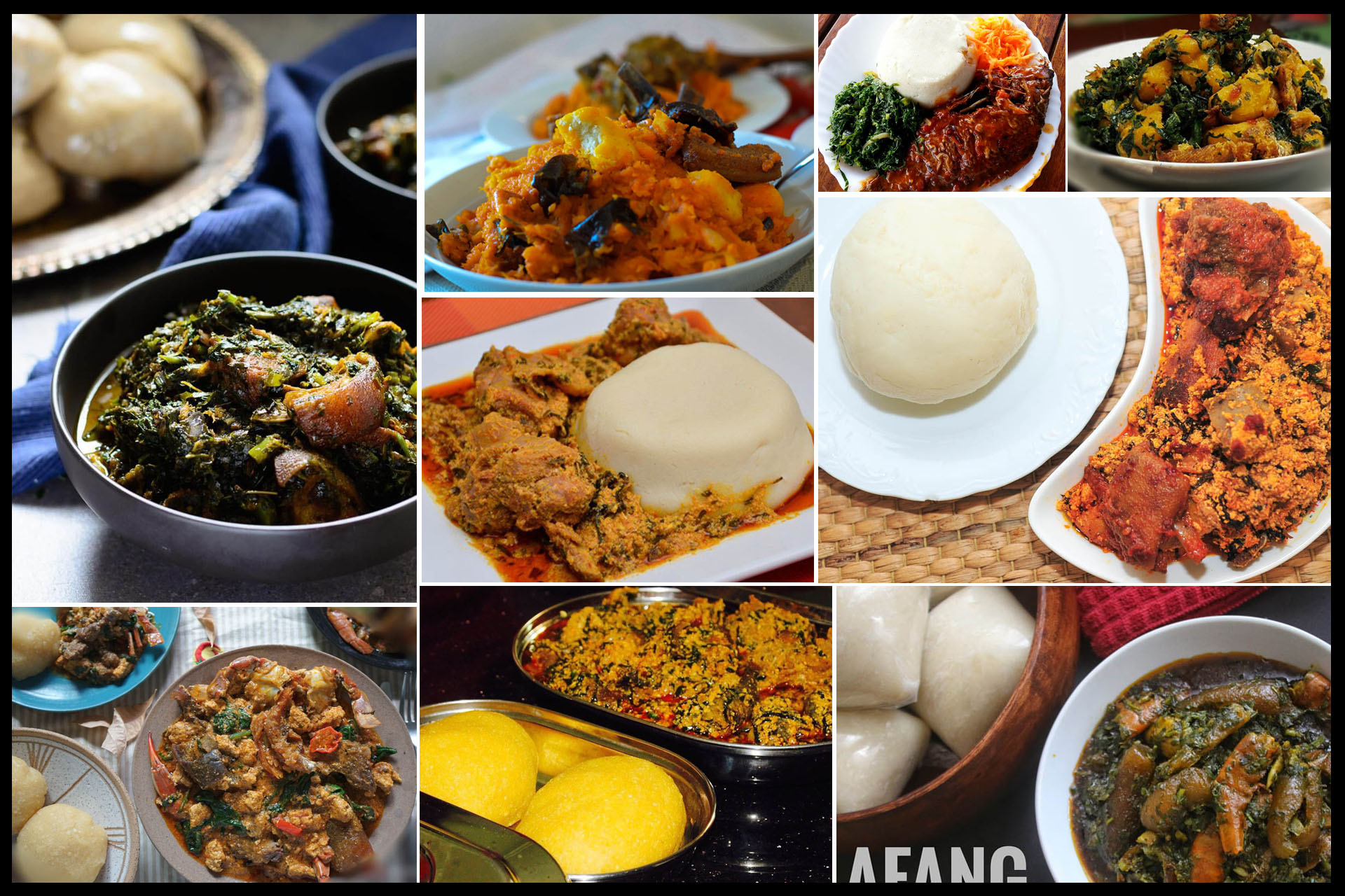 Egusi Soup, Ogbono Soup, Afang, White Soup, Pepper Soup, Fufu, Eba, Amala, Semo and So On.