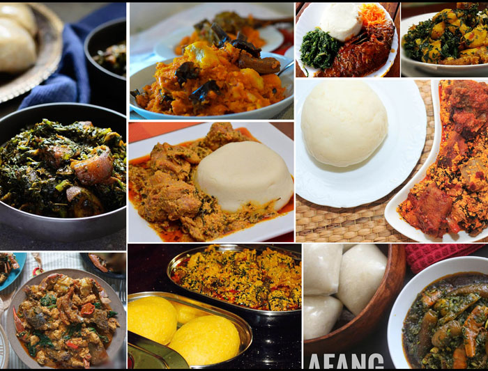 Egusi Soup, Ogbono Soup, Afang, White Soup, Pepper Soup, Fufu, Eba, Amala, Semo and So On.